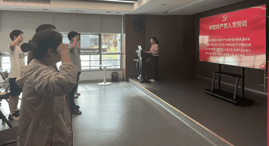 会议最后,,,全体党员在党旗下集体重温入党誓词,,, “我志愿加入中国共产党……。。。。”铿锵有力的誓词让每位党员时刻牢记共产党员的神圣职责,,,,坚定对党的事业奋斗终身的决心。。在新征程上,,35273党员继续不忘初心,,牢记使命,,,踔厉奋发,,,,笃行不怠。。